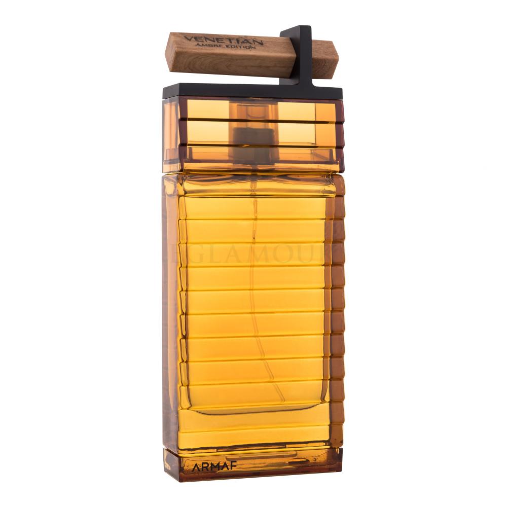 Odkryj fascynujący zapach, w którym świeże cytrusy przeplatają się z pikantnymi przyprawami, owocami, ambrą, paczulą i drzewem sandałowym. Woda perfumowana Armaf Venetian Ambre Edition przyciąga spojrzenia już swoim wyrazistym, tryumfalnym, optymistycznym wyglądem. Użytkownik Venetian Ambre Edition zawsze robi wrażenie pewnego siebie: zarówno podczas pracowitego dnia, jak i na swobodnej wieczornej imprezie. Chcesz wzbudzić zainteresowanie kobiety swoich marzeń? W takim razie nie przeocz tej charyzmatycznej wody perfumowanej!