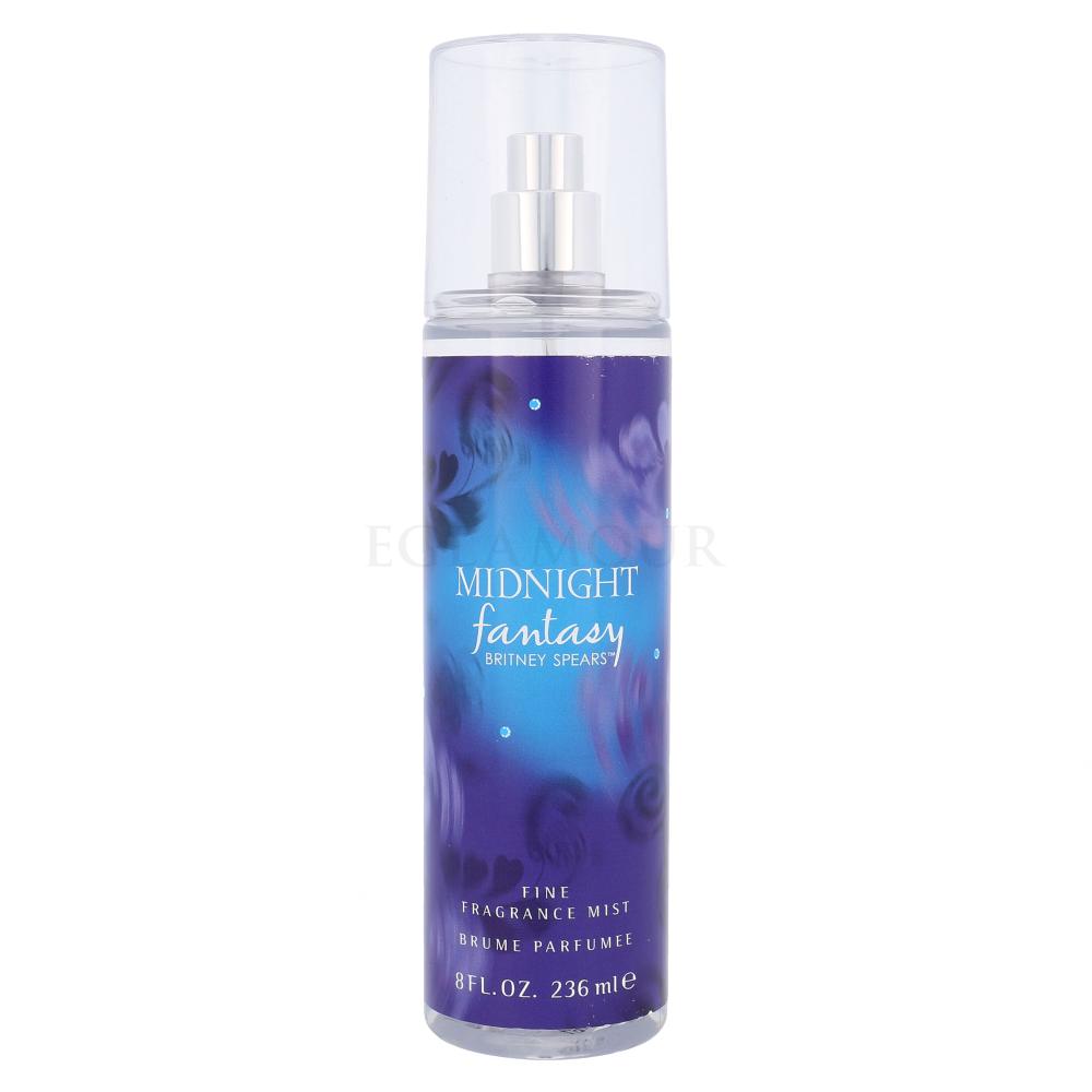 Spray do ciała Britney Spears Fantasy Midnight bazuje na wodzie perfumowanej o tej samej nazwie z 2006 roku, która w ciemnoniebieskiej buteleczce z kryształkami przypomina jasną gwiazdę na nocnym niebie. Kompozycja perfum Fantasy Midnight rozpoczyna się zapachem czarnej wiśni, maliny i śliwki. Serce należy do uwodzicielskiego połączenia nocnej orchidei, frezji i irysa. W bazie spotykają się afrodyzjakalna ambra, piżmo i wanilia. Britney Spears Fantasy Midnight, soczystą kwiatowo-owocową kompozycję ze zmysłowym akcentem wanilii, teraz możesz mieć również w postaci sprayu do ciała.