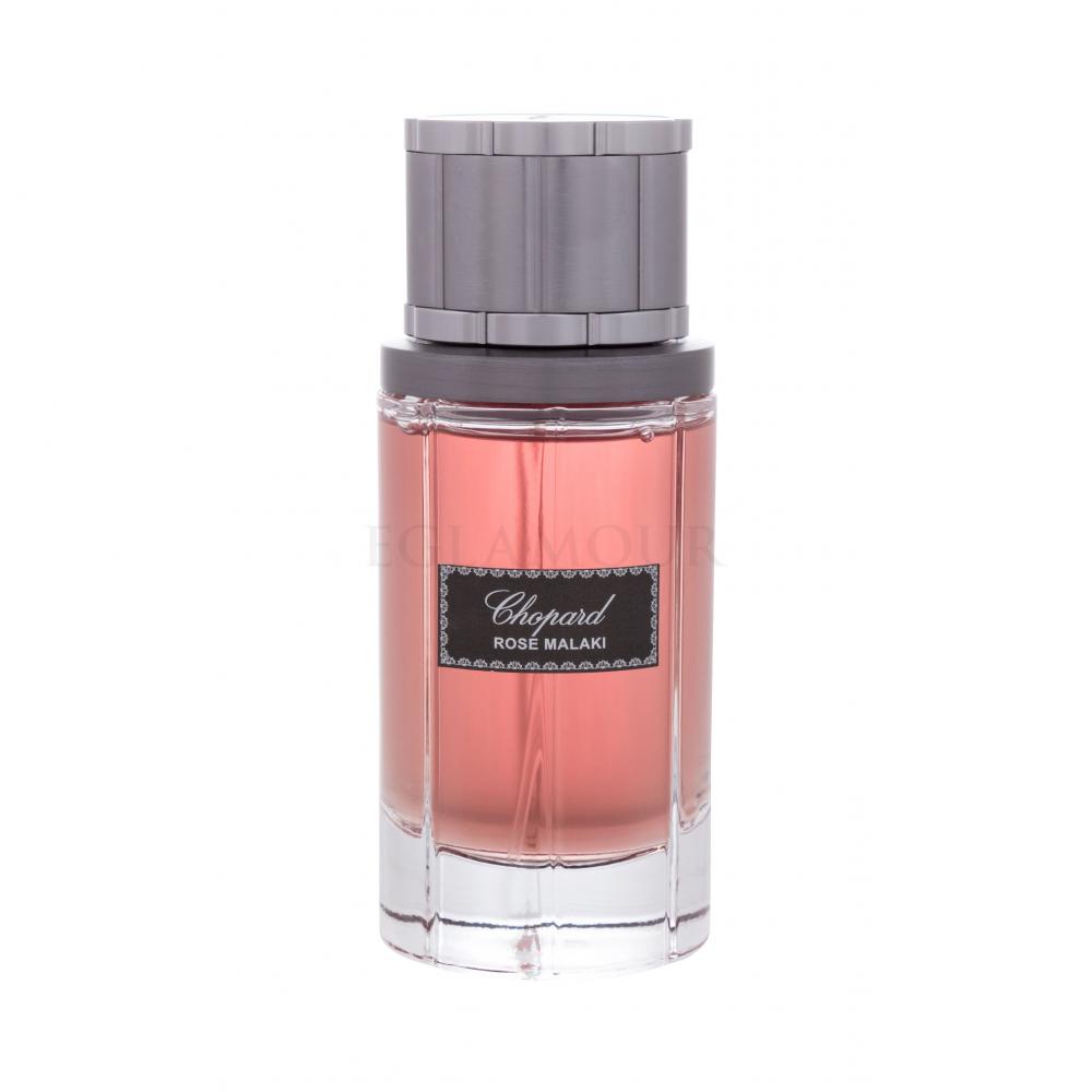 Dasz się skusić w wonną podróż do Orientu…? Woda perfumowana Chopard Malaki Rose (2014) to wspaniałe dzieło szwajcarskiej marki jubilerskiej i perfumeryjnej Chopard. Podkreśli Twoją charyzmę przepięknym zapachem, a dzięki udanemu designowi zabłyśnie również w aranżacji wnętrz. Za jego kompozycję odpowiada doświadczona perfumiarka Amandine Clerc-Marie. Chociaż głównie różowa, EdP Chopard Malaki Rose ma pikantny drzewny charakter - z metalicznymi, skórzanymi i tytoniowymi odcieniami. Dlatego oprócz kobiety zainteresuje również mężczyznę – współczesnego dżentelmena, który lubi popisywać się zarówno swoją siłą i zdecydowaniem, jak i delikatnością i szarmanckością. Skoordynuj się ze swoim partnerem przy wyjątkowych wydarzeniach i w romantycznych chwilach tym samym zapachem - wody perfumowanej Chopard Malaki Rose!