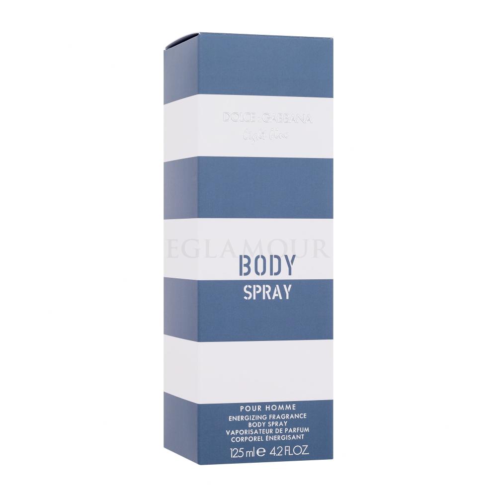 Spryskaj swoją skórę sprayem do ciała Dolce & Gabbana Light Blue Pour Homme i ciesz się uczuciem podobnym do zanurzenia się w morskiej wodzie. Czy czujesz już zapach soli, dotyk chłodnej wody i ciepłe promienie słońca? Poddaj się absolutnemu relaksowi… Zapach Light Blue Pour Homme ma wiele pochwalnych recenzji, takich jak: „Gdziekolwiek pójdę, zawsze znajdzie się tam kobieta, która powie mi lub zasugeruje, że pięknie pachnę.” „Jest przyjemna, lekka, młodzieńcza i sexy!”