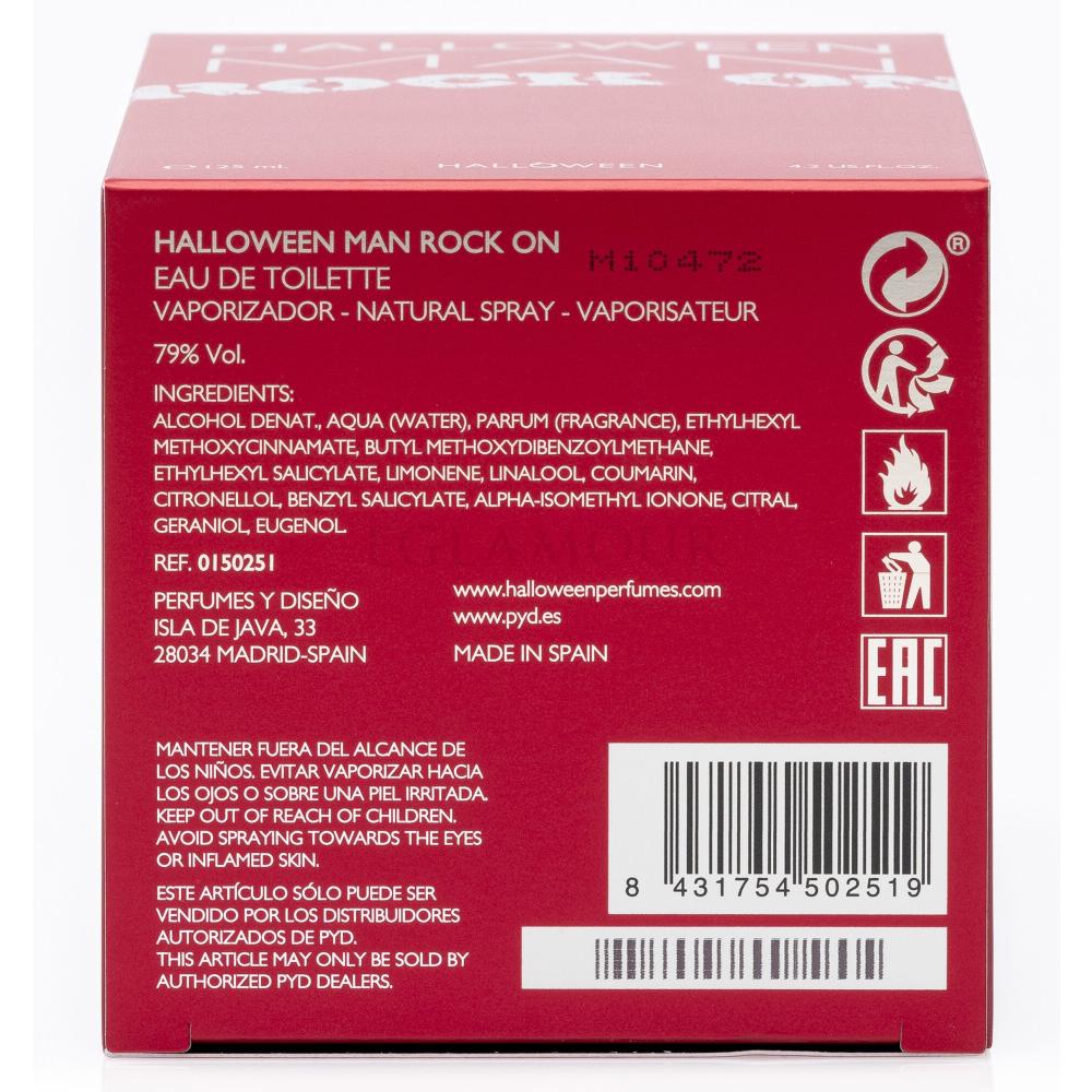Do seksownego mężczyzny o buntowniczej duszy przemawia woda toaletowa Halloween Man Rock On (2014), która staje się jego drugą skórą. Jej aromatyczne nuty z cytryną, pieprzem, jabłkiem, lawendą i piżmem na pierwszym planie doskonale współgrają z rytmem nocy. Namiętność dodatkowo wzmacnia czerwona buteleczka z kuszącą srebrną nakrętką. Nie wahaj się – dzięki wodzie toaletowej Halloween Man Rock On zrobisz wrażenie na kobietach zarówno wieczorem, jak i w ciągu dnia.