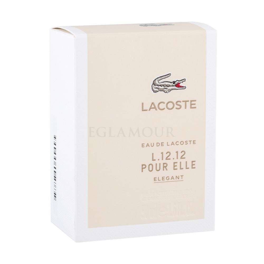 Woda toaletowa Eau de Lacoste L.12.12 Pour Elle Elegant powstała z myślą o pewnych siebie kobietach, które jasno określają swoje cele i odważnie dążą do ich realizacji. Kompozycja łączy w sobie świeże owocowe tony i upajające kwiatowe akordy, dzięki czemu zawsze będziesz czuć się naturalnie piękna. Wodę toaletową Eau de Lacoste L.12.12 Pour Elle Elegant możesz nosić przez cały rok, ale jej zapach najlepiej rozwinie się w trakcie ciepłych letnich dni. Na chłodniejsze miesiące zalecamy wybór korzenno-orientalnych kompozycji, które mają "rozgrzewający efekt".