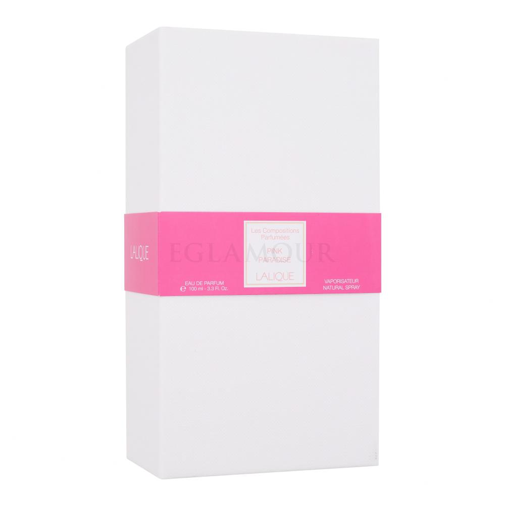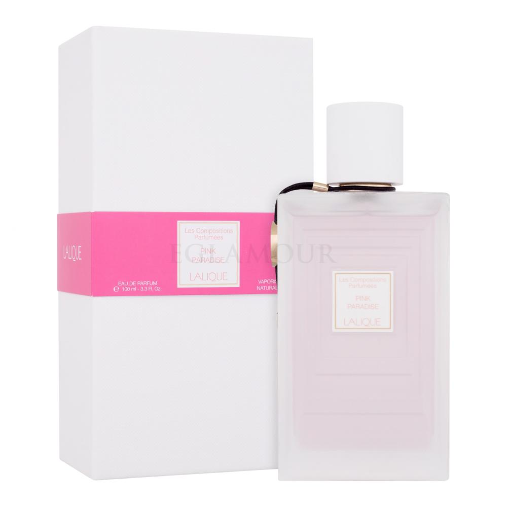Promienie słoneczne dające energię soczystym cytrusom. Różowy, puszysty obłoczek erotyzującego piżma unoszący się na kwiecie heliotropu i morska bryza pachnąca jaśminem. Szczypta pieprzu jak czarny piasek plaży na wyspie. Ciepło ambrowej skóry, jedwabiste jak drzewo sandałowe. Powietrze jest żywe, pulsujące akordami Iso E Super, wręcz cudownej molekuły o kremowych, drzewnych nutach, która na każdej kobiecie pachnie inaczej... Właśnie takie emocje wywoła w Tobie woda perfumowana Lalique Les Compositions Parfumees Pink Paradise wprowadzona na rynek w 2018 roku.