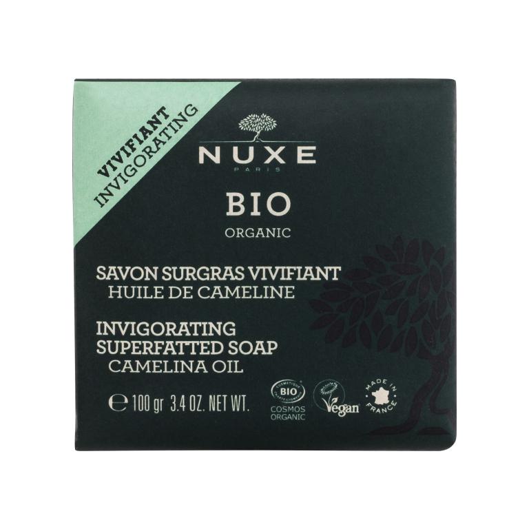 Organiczne mydło w kostce NUXE Bio Organic Invigorating Superfatted Soap Camelina Oil delikatnie, ale skutecznie usuwa zanieczyszczenia i pozostałości kosmetyków ze skóry twarzy i ciała, pozostawiając po sobie urzekający zapach kwiatu pomarańczy.