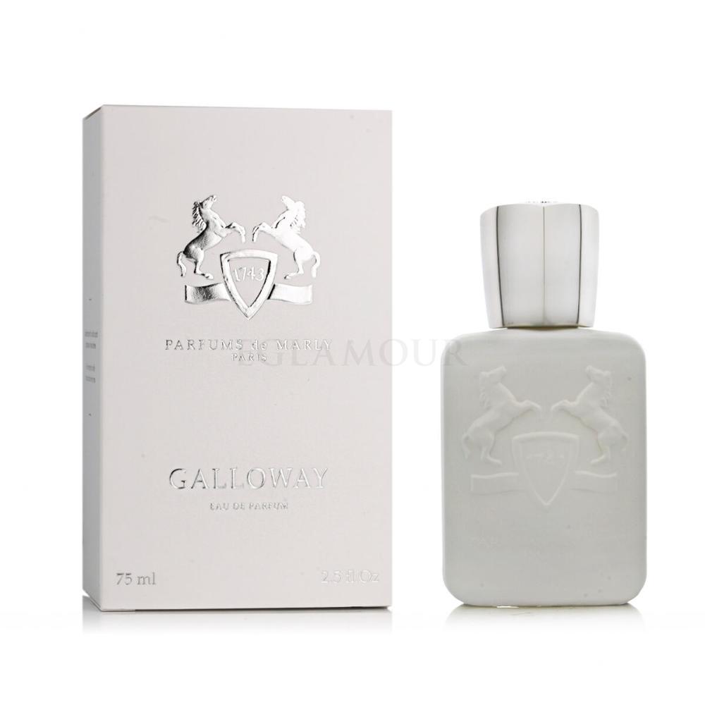 Unisex perfumy Galloway charakteryzuje przemyślana kompozycja. Głowa kompozycji jest pieprzowo-cytrusowa, serce irysowo-pomarańczowe, a baza bursztynowo-piżmowa. Esencja głowy uwolni się pierwsza i pachnie przez około kwadrans. Serce to typowy zapach perfum, odczuwalny przez dwie do trzech godzin. Parfums de Marly wprowadza cięższe zapachy kwiatowe w stylu XVIII wieku do serc swoich dzieł perfumiarskich. W tym przypadku chodzi o kwiat pomarańczy, popularny zarówno na dworze Ludwika XV, jak i w dzisiejszym społeczeństwie. Baza, czyli głębia perfum składa się z najtrwalszych składników, tutaj na podstawie piżma i żywic aromatycznych. Zapach utrzymuje się kilka godzin.