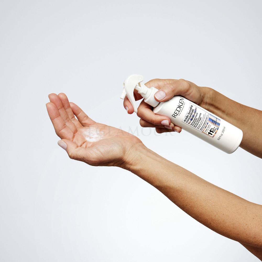 Przywróć zniszczonym włosom utraconą witalność z odżywką Redken Acidic Bonding Concentrate Conditioner. Jej formuła zadba o optymalne nawilżenie i odżywienie pasm, a także wyrówna ich pH. Kosmetyk wzmacnia osłabione wiązania włókien włosowych, podnosząc tym samym ich elastyczność i odporność na uszkodzenia. Regularne stosowanie odżywki pomaga ograniczyć łamliwość kosmyków i rozdwajanie się ich końcówek. Efektem są elastyczne i zdrowo wyglądające włosy.