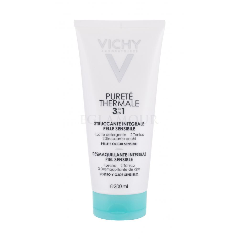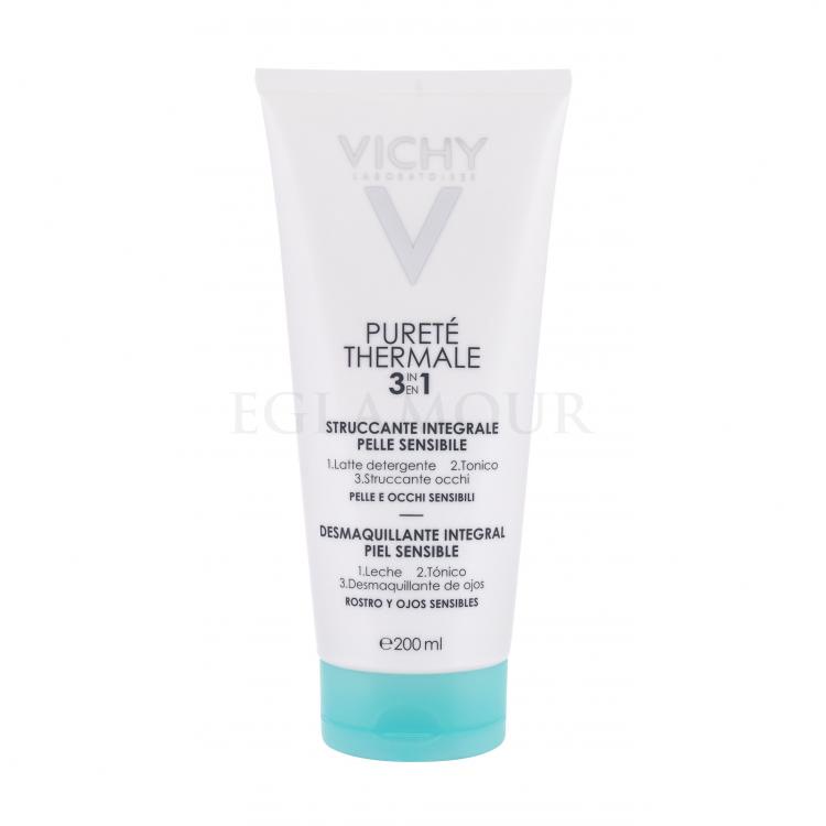 Vichy Purete Thermale 3in1 200ml - Mleczko demakijażu do wszystkich typów skóry Emulsja o jedwabistej konsystencji, która doskonale oczyszcza skórę z wszelkiego rodzaju zanieczyszczeń oraz resztek make-upu. Zapewnia uczucie świeżości i gładkości. Dodatkowo tonizuje oraz łagodzi podrażnienia.