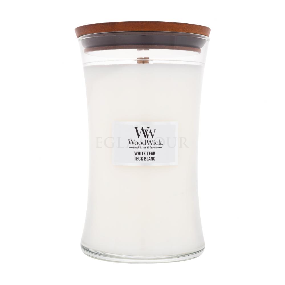 Uwielbiasz świeży zapach morza, ziołową moc lawendy i elegancję cennego drewna? Wegańska świeca zapachowa unisex WoodWick White Teak łączy w sobie to wszystko, co stworzy klimat śródziemnomorskich wakacji w Twoim salonie, przedpokoju, sypialni czy biurze. Nie wahaj się: oprócz orzeźwiającego zapachu i stylowego designu czeka na Ciebie również trzaskający knot i relaksujące migotanie płomienia... Dzięki świecy zapachowej WoodWick White Teak masz gwarancję, że zapomnisz o zmartwieniach i szybko zyskasz nową energię.