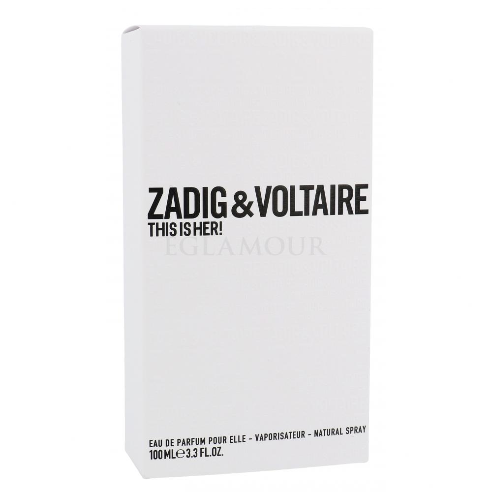 Francuski dom mody Zadig & Voltaire odważnie łączy ze sobą rock i elegancję. Równie śmiała i niekonwencjonalna jest woda perfumowana dla kobiet Zadig & Voltaire This Is Her!, którą przedstawiono w roku 2016. Zapach ten udanie balansuje na granicy między jasnością i mrokiem.